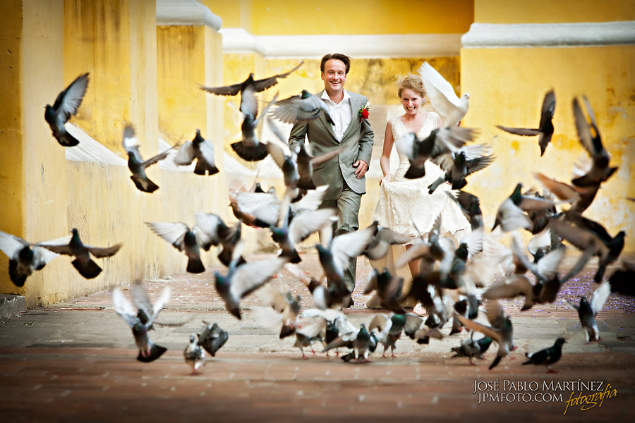 sucked it up, Jose, Maria and Mariano threw birdseed like mad people and the birds came a-flocking. Jose got them just where he wanted them and told us to run into them! We stood and held hands and waited for Jose to get into position and did as we were told. We ran at the pigeons…it wasn’t THAT bad but I did let out a little scream and had my mouth open so had to do it all over again! The shot came out perfectly and it is one of my favourites so, Thank you Jose for making me face my fears that day, it was worth it!