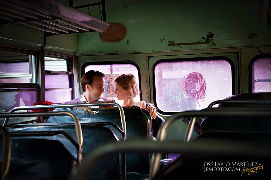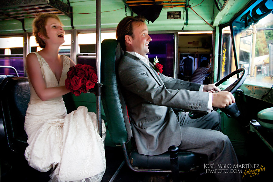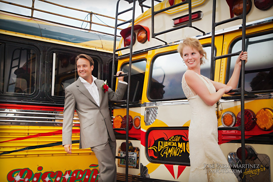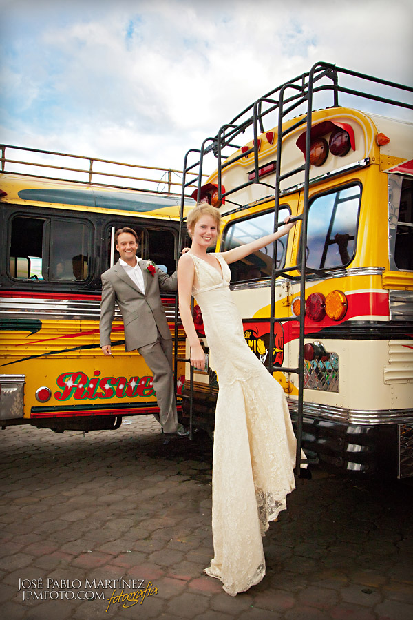 We popped into the market next and posed with some great handmade masks and materials and our last stop on the photograph trail was the bus station. Most of you will probably know that the buses that run through central America are called chicken buses. This is because people transport ANYTHING on them…including chickens! When on route they are normally crammed full to the rafters of people, chickens, bags, children, dogs,and there is still always room for ‘Uno mas’! Luckily we were looking for an empty one so popped into the station, we had a great audience there and it was great fun!