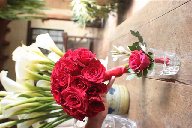 It was so lovely having an amazing room to relax in and get ready for the wedding. It was such a wonderful treat and in one of the most gorgeous hotels I have even stayed in and just when I thought it couldn’t get any better…we returned from our evening wander the night before the wedding to find candles, rose petals, swans (not live ones) AND 2 dozen red roses in the room! It was so beautiful and made our night! We really were in the mood for a wedding when we woke up. We spent the morning blogging a little bit and then I made time for me! I plucked my mono brow, I painted my chipped toe nails and had a fabulous hot shower. Believe it or not from the pictures I DID style my hair and took my time putting my makeup on. I spread my measly make up bag all over the side, chose my lovely special occasion earrings from Alex’s Mum and just generally girled out for a good hour! I asked Anita if she would mind if I used the beautiful roses for my wedding bouquet and she said she would be happy for