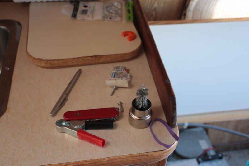 We headed to home depot smiling like it was christmas day. A quick nip into home depot and we had a water filter and the clips to fit it $35! It was only lunch time! Days like this dont happen to us when we are on the road…. And they didnt. First thing was where to put the filter, after taking the cupboards apart with a spoon and a pen knife and having no luck at finding the space I finally took the bed apart and found the place. I cut the hose that leads from the water tank to the kitchen sink and took the filter out the box… Clearly that was the wrong order. Well, clear to anyone reading this now, not clear to me hunched under the bed in 100’c heat with a matress on my head, torch in my mouth and a carving knife in my hand.